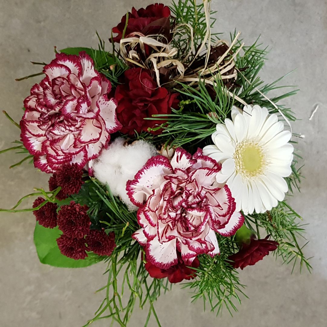 Pieni kimppu onnen toivotukseen, iloisista kauden kukista.